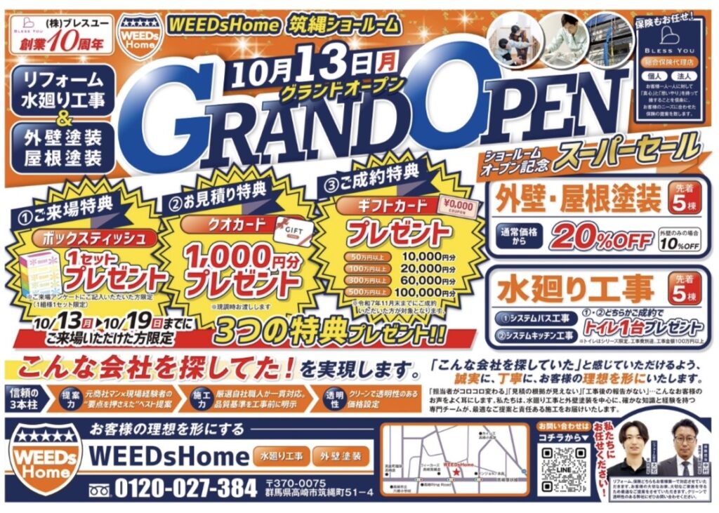 ついにショールームが完成しました! 本日10/13(月)よりオープン致しました! 皆様からのご連絡、ご来店お待ちしております!! 📍群馬県高崎市筑縄町51-3 ☎️027-384-4316 🖨️027-384-4317 […]