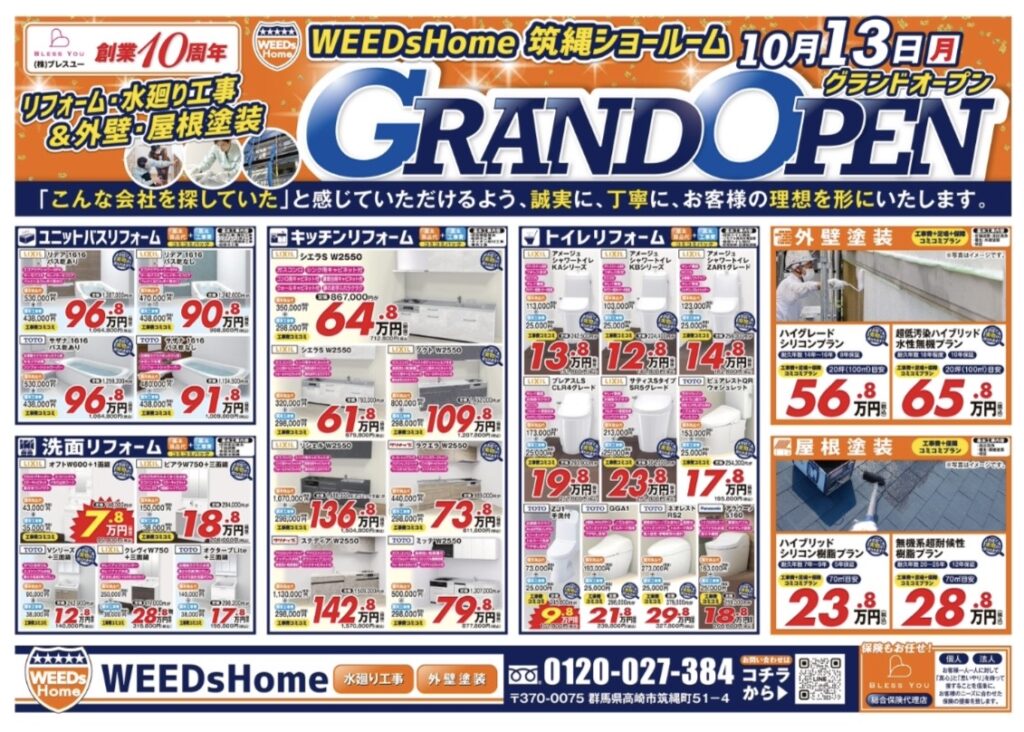 #weedshome #群馬県#高崎市#筑縄町#リフォーム#リフォーム工事#業者#助成金#水廻り#トイレ#トイレリフォーム#洗面#キッチン#お風呂#外壁#塗装#無料#見積もり#予算